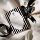 This double-sided New Year’s Eve party invitation features bold stripes paired with a contemporary baroque-style frame, highlighted by a watercolor-sketched champagne glass with a black bow. A blend of clean modern type and elegant script brings a refined, statement-making touch to the overall design. Easily customize it by clicking "Personalize this design".