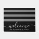 Modern Striped Pattern Family Welcome Black Grey Doormat
