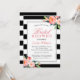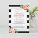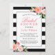 Modern Stripes Floral Silver Frame Bridal Shower Invitation