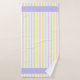 Beautiful modern vertical stripes in light multicolor pastel colours with lavender horizontal stripe Bath Towel Set. Text can be personalized. Text only on one side.