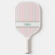 Modern Stripes Pink and Green Personalized Name Pickleball Paddle features soft pink and white vertical stripes with a bold green name centred on a white band for a modern, elegant look. Perfect birthday gift for her. A chic and useful pickleball paddle that’s both stylish and personal.