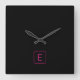 Modern Styled Initial Monogram | Pink & Black Square Wall Clock