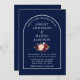 Modern Stylish Arch Burgundy Floral Blue Wedding Invitation