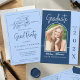 Celebrate your graduate’s big achievement with this timeless blue and white graduation party invitation, featuring a clean, modern layout with a personalized photo and elegant script typography. This invitation is perfect for creating a stylish and memorable celebration. Celebrate this milestone with a clean, elegant invitation that lets your graduate shine.