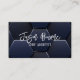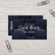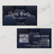 This design features a minimalist, stylish, professional business card with a blue honeycomb like pattern background and white coloured text and icons. The front includes a customizable option to add your full name in a script font and profession or job title. The back has customizable options to add your full name, contact information (telephone number, e-mail, website, mailing address) and upload your very own scannable QR code image.