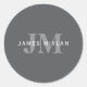 Modern Stylish Dark Grey Monogram & Name Classic Round Sticker