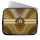 Modern Stylish Golden Brown Waves Monogram Laptop Sleeve