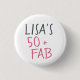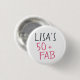 Modern and stylish 50th birthday button with the text fifty and fabulous in hot pink elegant script. Simply add your name to this 50th birthday celebration custom button. Perfect birthday gift for a modern, stylish and elegant 50 year old. Exclusively designed for you by Happy Dolphin Studio!