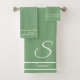 Modern Stylish Sage Green and White Monogram Bath Towel Set