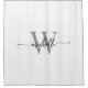 Stylish Girly Feminine Modern White and Grey Monogram Initial Name Signature Script Custom Personalized Bathroom Shower Curtain. Featuring a first name (or family name) in a pretty hand lettered style swash tail font typography (or calligraphy) with monogram initial in grey and black on white. Great stylish feminine housewarming gift, also for birthday, anniversary, bridal shower, wedding, bachelorette party and It’s for the girl who likes elegant stylish things.