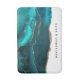 A bath mat with an abstract style. Illustration of teal agate stone with layers of varying shades.