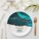 Modern Stylish Teal & Gold Agate on White Birthday Paper Plate