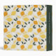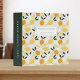 Personalize this summer-themed binder by adding your name, business name, or other custom text for colourful addition to your office. The design features a pattern of yellow lemons, oranges, and white flowers with a contrasting dark green spine. Perfect for event planners, recipe binders, school binders, and more!