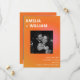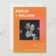This wedding save the date card pairs a bold orange and pink sunset gradient with a candid engagement photo for a modern, high-energy announcement. The front features a strong typographic layout with your photo centred, while the back includes space for a second image for a full storytelling moment. The clean design and vibrant summer palette feel confident, stylish, and effortlessly contemporary. A beautiful choice for couples planning a city wedding, rooftop celebration, or modern summer event.
