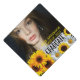 Modern Sunflower Photo Graduation Graduation Cap Topper, This trendy, elegant grad party invitation features an ane photo of the 2023 graduate and a second, faded, photo. This design contains sunflowers with a picture of the graduate, along with the name and year of graduation for the graduate with the grad's name, school, and class year. A stylish and simple graduation Graduation Cap Topper that will highlight your grad's favourite personal photos!, Click the edit button to customize this design.
