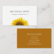 Modern sunflower business card, with a yellow rustic floral image on a white background. With simple typography, you can customize with your own name or title. The back of the card has a dark orange background and white customizable lettering. Great for getting the word our about your business.