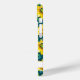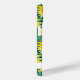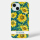 Customize this colorful modern sunflowers on teal painting iPhone 15 case with your your name in a trendy modern CAP font in teal on white. It's so beautiful and happy!