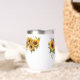 Custom name and initial modern chic yellow sunflowers on white background tumbler. Personalize it by adding any name and initial to make it unique. This tumbler is not just a practical everyday item but also a thoughtful bottle gift for any celebration.