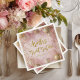 Sweet sixteen party napkins with pink and gold balloons, with a digital gold stars frame, modern fonts