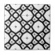 The style is modern yet has a timeless appeal due to its monochromatic colour scheme and symmetrical design. This tile would make a striking addition to any interior design project, adding a touch of elegance and intrigue.