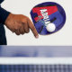 Stylish table-tennis-racket personalized with his name in cool fonts, with big oversized red and blue initial letters with shadow over a solid dark blue background... modern monogrammed design, personalized with the name of the stylish player...