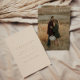 A modern and elegant, tan wedding save the date, designed with script lettering. Personalize with your own engagement photo, and future wedding details on the front and the back.