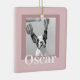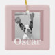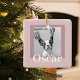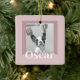 Celebrate your furry best friend with this modern personalized pet photo ornament in soft blush pink tones. Designed with a stylish layered square frame and bold custom name, this ornament adds a chic touch to any Christmas tree. Perfect for dog or cat lovers, new pet parents, and anyone who considers their pets family. Simply upload a favorite photo and personalize the name to create a heartfelt holiday keepsake or thoughtful gift for friends and family.
