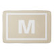Modern Taupe Simple White Frame & Monogram Letter Bath Mat