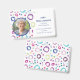 Create colorful employee staff id cards to brighten up their day. Colorful and modern pattern of circles accents the employee photo. Perfect for school staff that includes teachers, librarians, principals,secretaries and other employees. Include staff members name, job title, school name and motto.