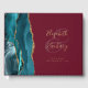 Modern Teal Agate Gold Script Burgundy Guest Book