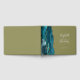 This elegant wedding guest book features a teal blue watercolor agate design trimmed with faux gold glitter. Easily customize the ivory text on an olive green background, with the names of the bride and groom in whimsical handwriting calligraphy over a large ampersand. Add additional text of your choice to the front and spine.