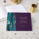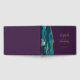 This elegant wedding guest book features a teal blue watercolor agate design trimmed with faux gold glitter. Easily customize the gold-coloured text on a purple background, with the names of the bride and groom in whimsical handwriting calligraphy over a large ampersand. Add additional text of your choice to the front and spine.