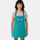Modern teal apron for boys with a black monogram and a white name. Personalize with your name and initial.