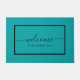 Modern welcome doormat with a black script on a teal background. Personalize with your family name or text.