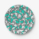 Modern Teal, Black, & White Striped Triangles Paper Plate