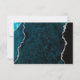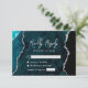 Modern Teal Blue Agate Silver Script Wedding RSVP Card