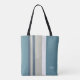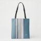 Modern Teal Blue and Tan Striped Personalized Tote Bag