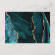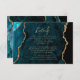 This elegant modern wedding details enclosure card features a background image of teal blue watercolor agate trimmed with faux gold glitter. The title appears in gold-coloured handwriting script, with customizable text below in copperplate font. The reverse side features a matching teal blue and gold agate design.