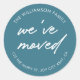 Modern Teal Blue Green Script We've Moved Address Classic Round Sticker