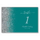 Modern Teal Blue Silver Glitter Edge Wedding Table Number