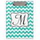Modern Teal Glitter Chevron Zig Zag Stripe Fabric Print Pattern Monogram Initial Clip Board Personalized