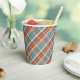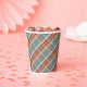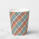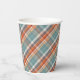 Modern Teal Dark Blue Orange White Plaid Pattern Paper Cups