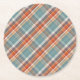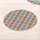 Modern Teal Dark Blue Orange White Plaid Pattern Round Paper Coaster