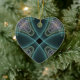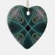 Modern Teal Geometric Fractal Art Graphic Heart Ceramic Ornament