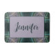 Modern Teal Geometric Fractal Art Graphic Name Bath Mat