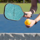 Modern teal glitter script name Pickleball Paddle. Personalize with your name.
