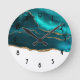 Modern Teal & Gold Agate with White Abstract Round Clock