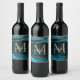Modern Teal Green Gold Agate Geode Chic Monogram Wine Label