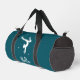 This modern teal gymnastics duffle bag features the silhouette of a gymnast alongside your custom name in elegant script typography. Perfect for kids who love tumbling, as a fitness bag or for dance lessons. Personalize it with your name and utilize the editing tool to adjust the font size to fit perfectly.
