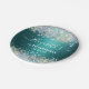 Modern Teal Holographic Faux Glitter Monogram Paper Plate